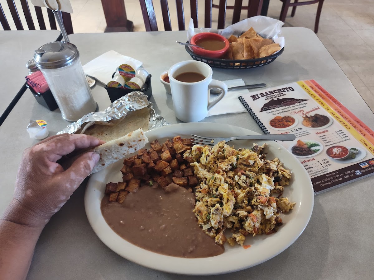 Really nice place if you are into down home traditional tasty and very reasonably priced menu. Nothing fancy here. Just nice clean well attended small place. I like. Visited at least five times and they are consistent, food hot, tasty, freshly cooked, mmm mmm. Last visit had breakfast, "lluevos ranchers especial", $6.99 includes three eggs, papas, one sausage patty, two strips bacon, half slice ham, and two freshly made tortillas. Good food here.